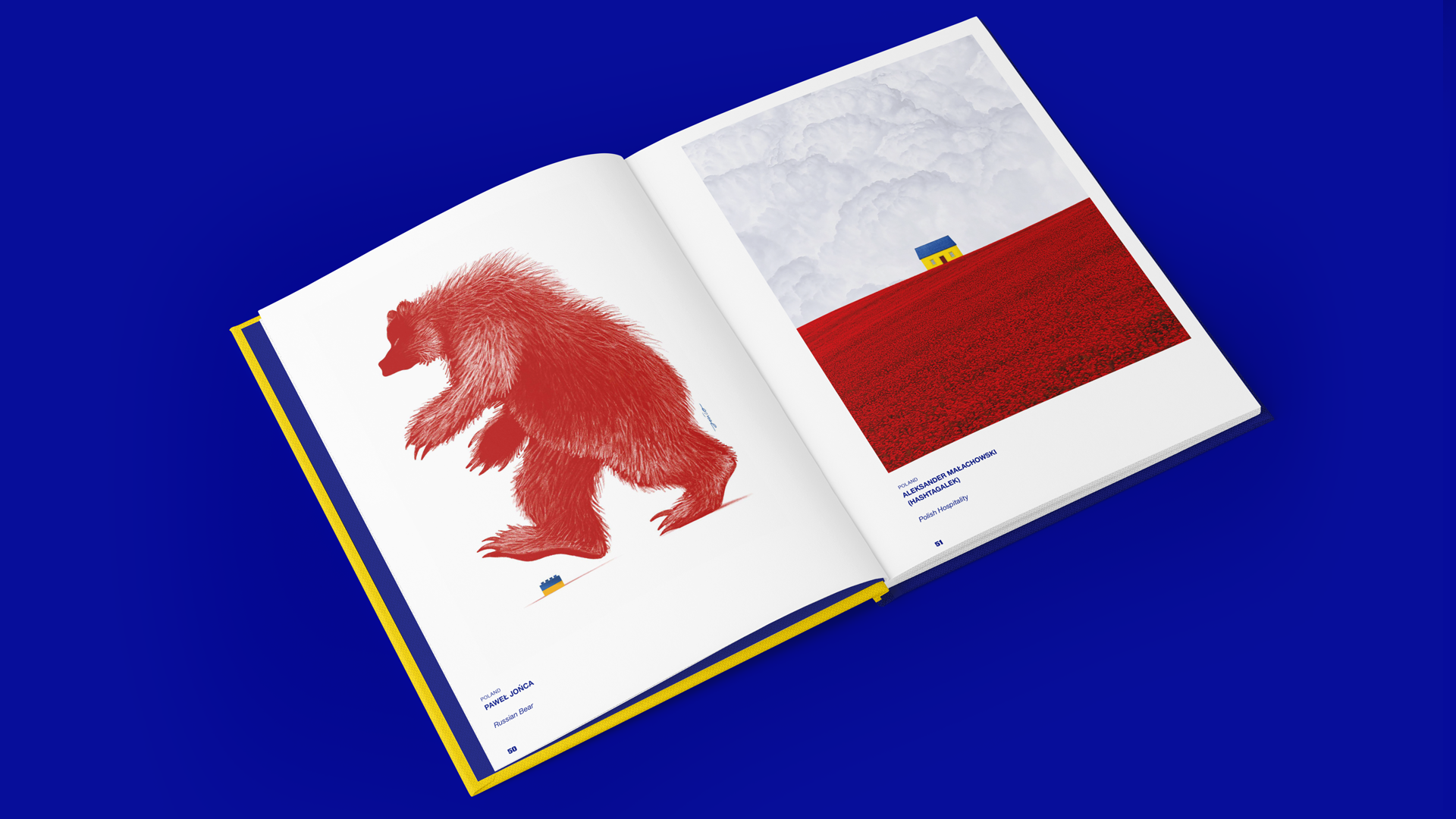 Magda Rejman: Zamarłam, kiedy zaczęły docierać do mnie pierwsze obrazy wojny w Ukrainie. Chwilę potem pojawiły się w sieci pierwsze prace artystów, napiętnowane różnymi emocjami: od gniewu i złości, przez satyrę po ukojenie i wzruszenie. Kiedy pierwszy raz zobaczyłam kolaż Barrakuz – prezydenta Zełenskiego w słonecznikach oraz plakat Russian Bear, Pawła Jońcy, zrozumiałam, że potrzebny jest projekt, który upamiętni niezwykłą twórczość, której jesteśmy świadkami. Chciałam, aby do projektu włączyli się nie tylko polscy twórcy, ale również zagraniczni, ich prace były zachwycające. Pomyślałam o bliskości Ukrainy, o tym, że jesteśmy sąsiadami, którzy otaczają ją terytorialnie a teraz otaczają ją również opieką i wsparciem. Miliony Ukraińców znalazły schronienie w krajach sąsiadujących z Ukrainą, zależało mi na tym aby również prace artystów znalazły „dom”, pod jedną okładką, aby przetrwały jako wspólna historia niezwykłych ludzi. Tytuł projektu „Neighbours” był już oczywisty, jesteśmy sąsiadami i jesteśmy tak blisko.