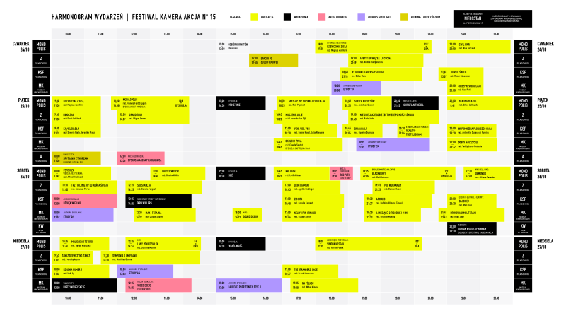 M.C.: Festiwal Kamera Akcja to czterodniowa kumulacja tego, co najlepsze ze wszystkich festiwali filmowych na świecie i w Polsce. Te cztery dni wynikają z tego, że można wziąć udział w przedłużonym weekendzie filmowym i to wystarczy, aby poznać trendy w sztuce audiowizualnej z danego roku. Nie każdy może pozwolić sobie na to, aby jeździć na Nowe Horyzonty, do Gdyni oraz do Koszalina, na Berlinale i do Cannes. Chcąc zobaczyć ciekawe kino – wystarczy wziąć tylko 2 dni wolnego w pracy i przyjechać do Łodzi na Festiwal Kamera Akcja.