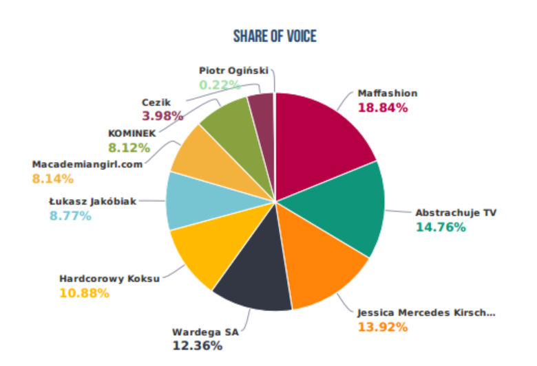 Największą ilością wzmianek może się pochwalić wyżej wymieniona blogerka modowa, trzecie i siódme miejsce także szafiarki. Drugie miejsce w naszym rankingu przypadło Abstrachuje – Cezaremu Jóźwikowi, Robertowi Pasutowi i Rafałowi Masnemu, panom którzy kpią w swoich filmkach z kobiet, mężczyzn, hipsterów, blogerów, a najbardziej z siebie samych. Ich klipy zamieszczane w sieci cieszą się od kilku miesięcy ogromną sławą. Czwarty onlinowy idol, Wardęga SA (Sylwester Adam) pod koniec minionego roku stał się nie tylko najpopularniejszym polskim kanałem na YouTube, ale również, jako pierwszy Polak przekroczył milion subskrybentów. Na miejscu piątym Hardkorowy koksu, który zasłynął nie tylko z powodu swoich mięśni i znajomości sportów walki, ale także z niekonwencjonalnych wypowiedzi. Filmiki z jego udziałem traktują o ćwiczeniach oraz odżywkach dla sportowców, ponadto Robert Burneika (tak właśnie nazywa się Hardkorowy Koksu), pojawił się w programie TVN Turbo „Nie ma lipy” i wystąpił dwa lata temu w teledysku disco polo. Kolejny w naszym rankingu Łukasz Jakóbiak, dziennikarz, który postanowił stworzyć własne talk show online. Od maja 2012 roku na wywiady zaprasza do swojej kawalerki osobistości ze świata kultury, sportu i polityki. Konsekwencja, wytrwałość i ciekawe rozmowy sprawiły, że Łukasz Jakóbiak jest rozpoznawalny w polskim show biznesie. Miejsce ósme – KOMINEK, sam o sobie pisze, że jest „znany z tego, że wszystko wie najlepiej i do wszystkiego ma jakiś stosunek”. Bloger jest autorem kilku książek, a jego blog czyta miesięcznie 326 tysięcy osób. Cezik, miejsce dziewiąte, wokalista, gitarzysta i kompozytor, publikujący głównie na You Tubie. Fenomen Cezika, dostrzeżony przez Szymona Majewskiego, zaowocował cyklem występów w telewizyjnym Show. Ostatnie miejsce w naszym rankingu zajął kontrowersyjny bloger kulinarny – Piotr Ogiński. Za sprawą jednej z jego publikacji wybuchł kryzys, jednak na fali popularności kucharz dostał się do programu telewizyjnego Top Chef. Każda z osób w naszym rankingu reprezentuje sobą konkretne umiejętności, o tym czy jest to talent decyduje publika.
