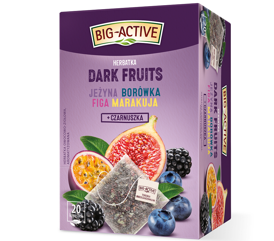 W portfolio herbatek owocowych Big-Active znajdziemy również Red Fruits, która stanowi połączenie egzotycznych owoców liczi ze słodkimi truskawkami. Herbatkę dopełnia także intrygujący smak kwaskowatych jagód goi wyróżniony przez dodatkową słodycz granatu. Wyrazisty charakter tej propozycji zawdzięczamy energetycznej guaranie. Red Fruits idealnie sprawdzi się do uprzyjemnienia śniadania lub podwieczorków.