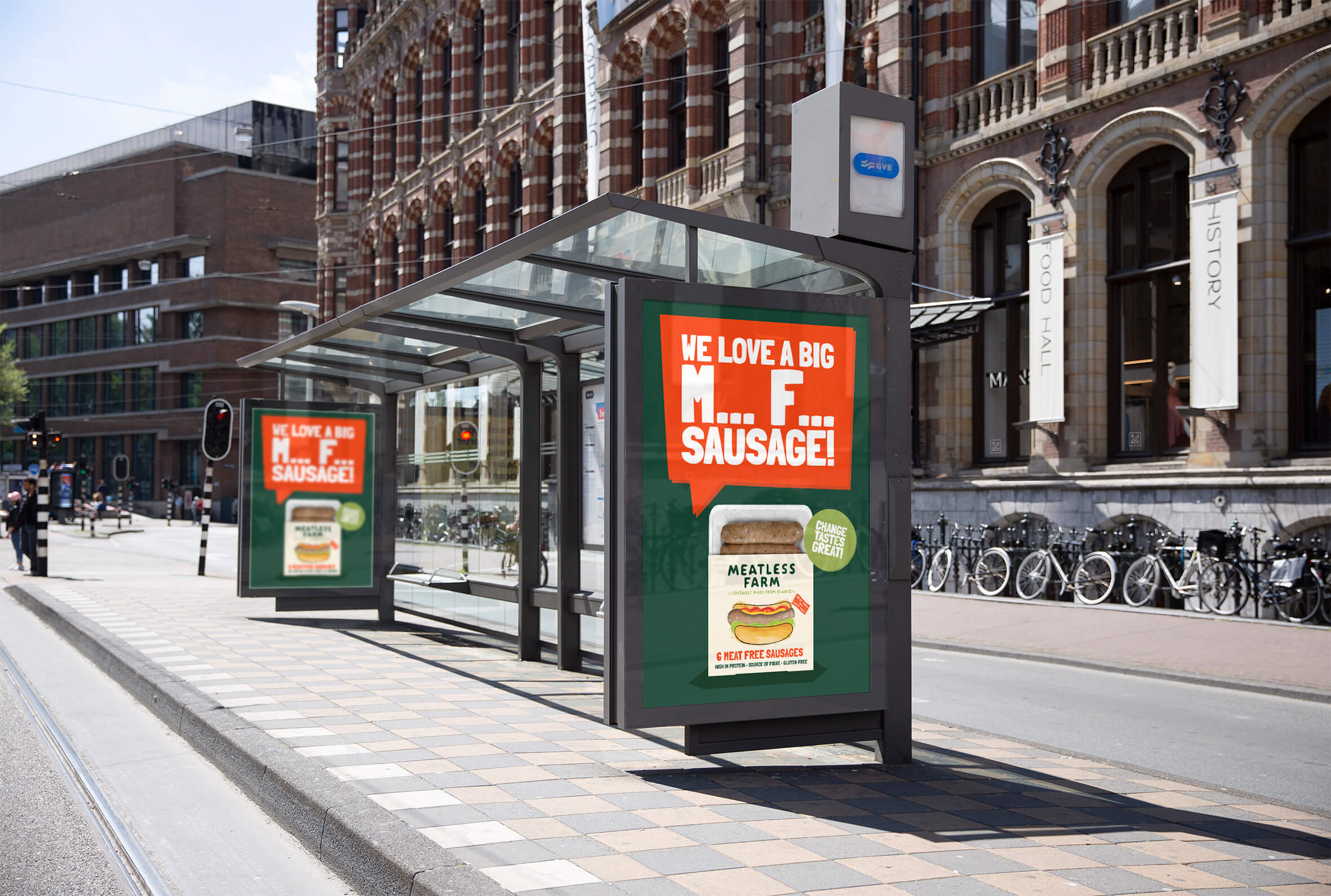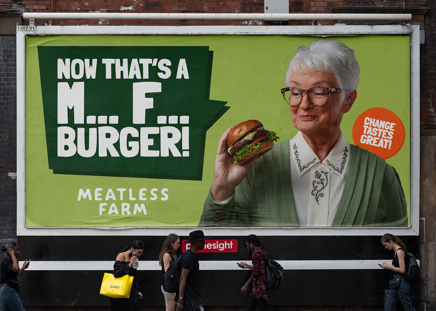 Na ulicach kilku dużych miast w Wielkiej Brytanii pojawiły się nietypowe billboardy promujące bezmięsne produkty marki Meatless Farm. Tuż obok zdjęć przedstawiających mielone „mięso” lub kiełbaski firmy, umieszczono pewne hasła, na które nałożono cenzurę, np. – „Now That’s a M**** F**** Burger”. Oczywiście zabieg ten został w tym przypadku użyty celowo, by na myśl sam nasuwał się wulgaryzm, jaki marka miała na myśli.