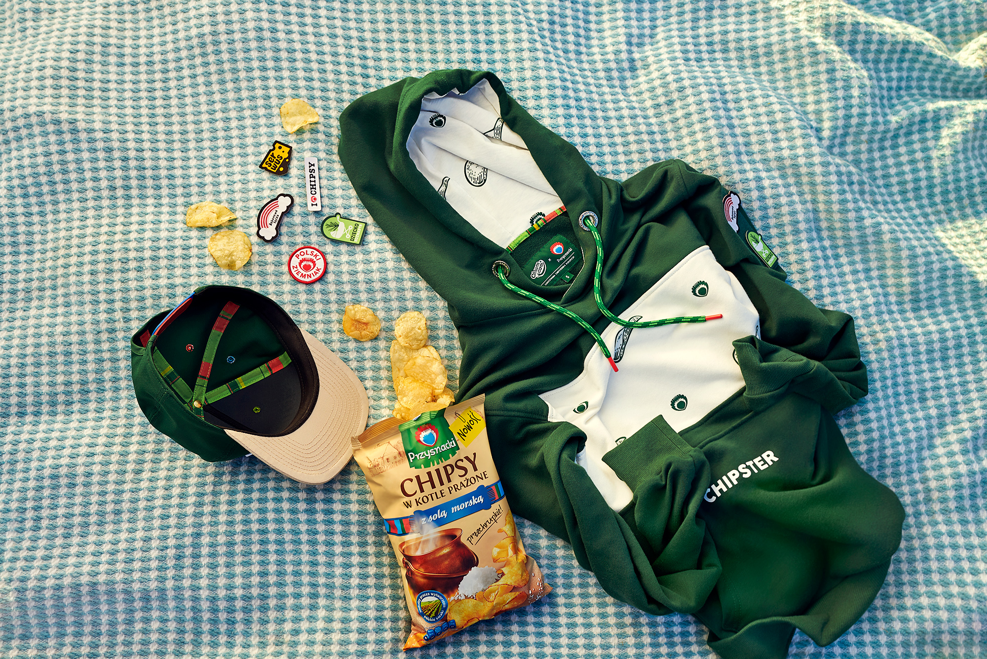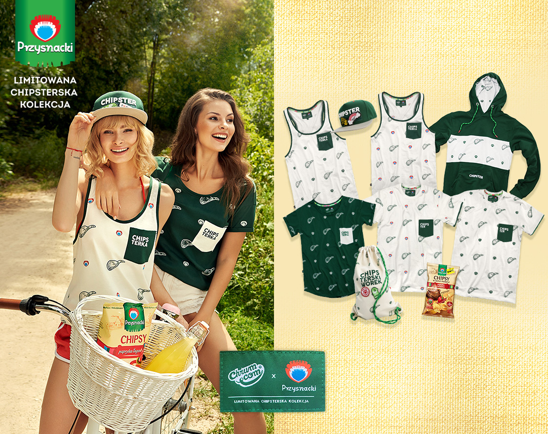 W skład kolekcji Chipster, zaprojektowanej we współpracy z marką odzieżową Chrum.Com, wchodzą: t-shirty, tank topy i bluzy, a także uniwersalne dodatki. Całość można do woli wzbogacać haftowanymi „narzepkami”, czyli grafikami na rzepy zabawnie interpretującymi smaki i cechy chipsów Przysnacki. Ubrania są do kupienia online w sklepie Chrum.Com, w „chrumowych” sklepach stacjonarnych i w mobilnym Chrum.Trucku.