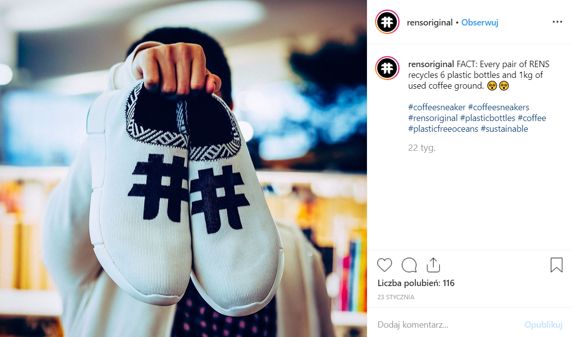 Sposobów na ponowne wykorzystanie plastiku jest wiele. Przykładem tego są buty skandynawskiej marki Rens, która stworzyła sportowe buty z butelek z tworzywa sztucznego oraz fusów po kawie.