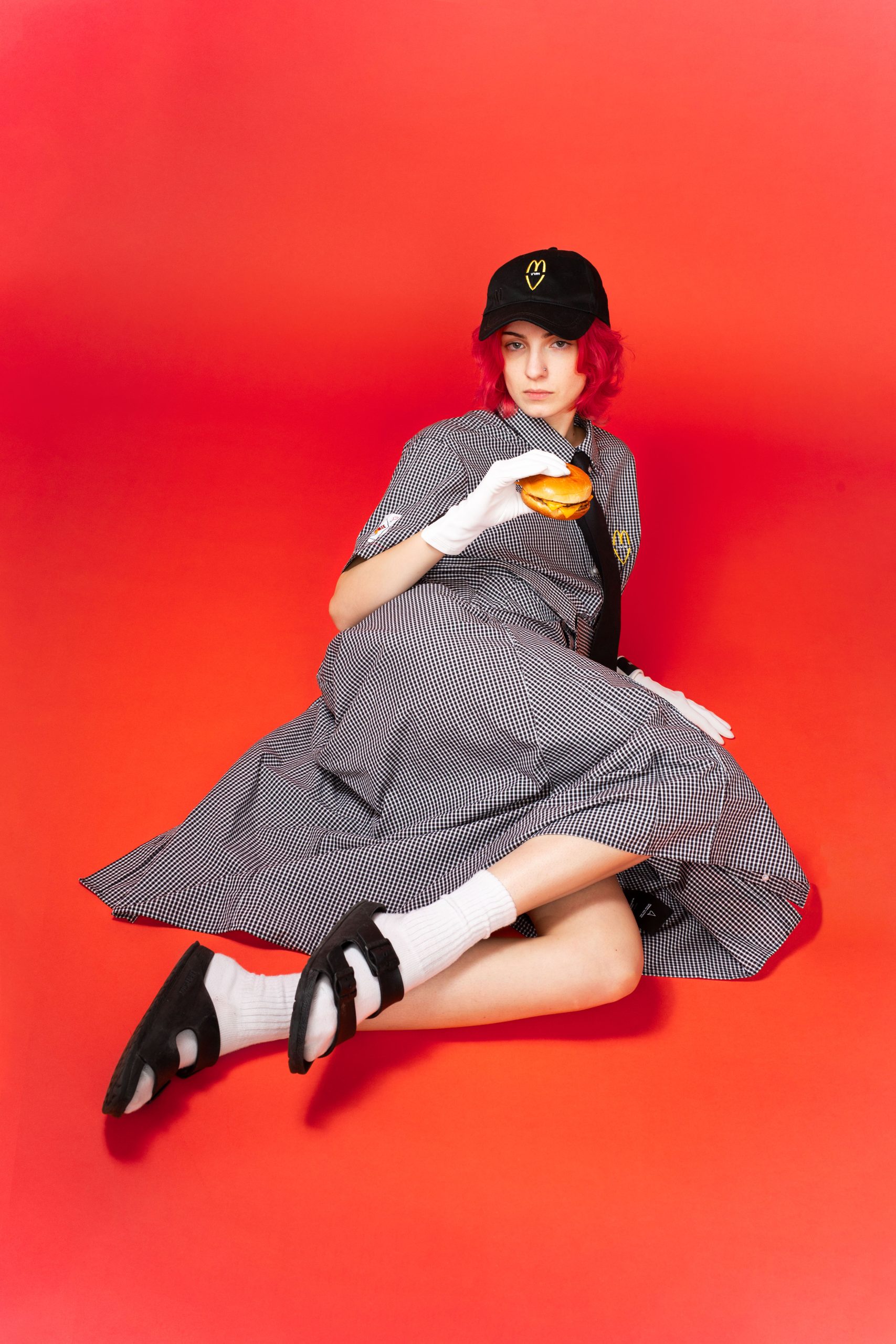 Vain postanowił przerobić robocze koszule i spodnie na luźne sukienki, bluzy z kapturem i spódniczki mini. Motyw złotych łuków pojawia się w formie nadruków i naszywek, ale też np. jako klamra do paska. Cała kolekcja jest utrzymana w tradycyjnej kolorystyce kojarzonej z popularną siecią fast food, ale świetnie będzie się prezentować także poza murami amerykańskich restauracji.