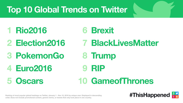Źródło: https://blog.twitter.com/2016/thishappened-in-2016