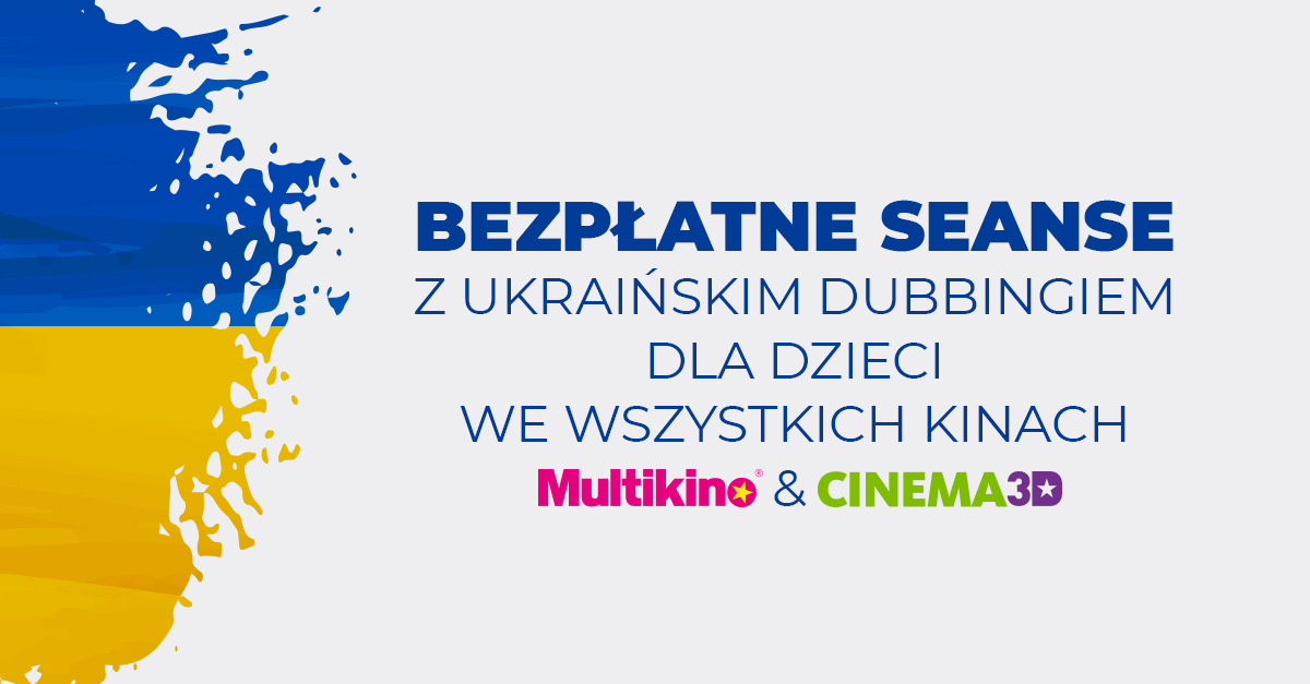 12 marca br. we wszystkich kinach sieci Multikino i Cinema3D rozpoczną się seanse z ukraińskim dubbingiem. Dla uchodźców z Ukrainy filmy będą wyświetlane za darmo.