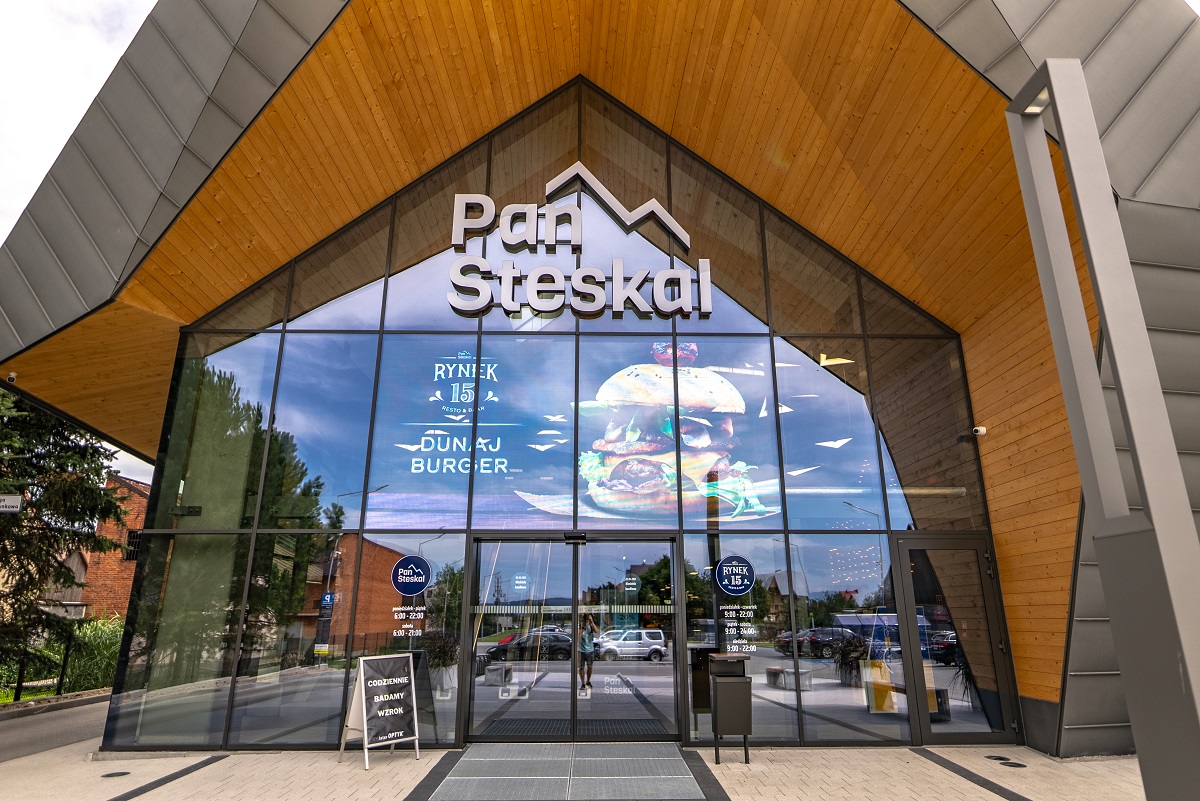 Każdy realizowany przez nas projekt to najczęściej nowa historia. Ciekawym wdrożeniem było Centrum Handlowe Pan Steskal, gdzie różne technologie, jak totemy, menu boardy oraz transparentne ekrany LED połączyliśmy w jeden centralny system do zarządzania treścią.