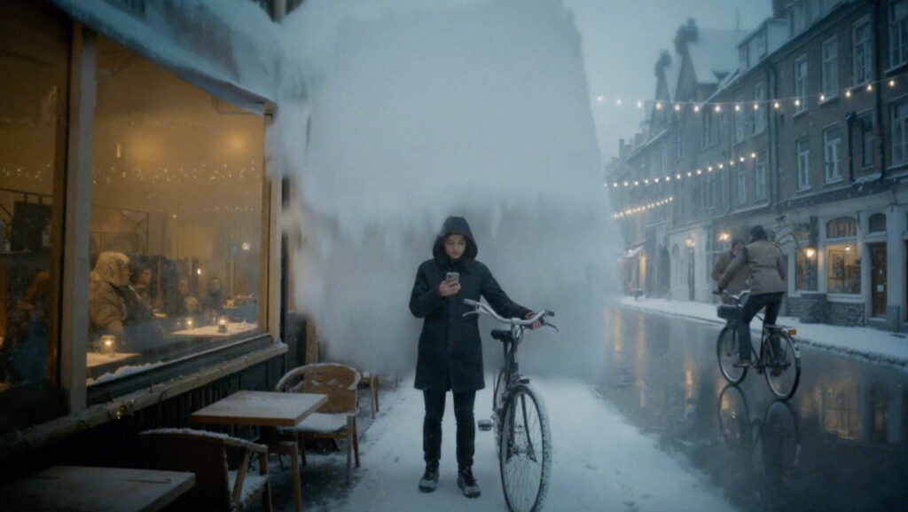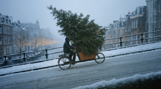 Według Bridge, scenariusz od samego początku zakładał wykorzystanie generatywnych modeli, ale nie jako „gadżetu” czy taniego sposobu na wygenerowanie świątecznego klimatu. Chodziło o wykonanie czegoś, co w klasycznej produkcji byłoby logistycznie i budżetowo niewykonalne: zimowe warunki, wiele lokalizacji, szerokie kadry miejskie, mokry asfalt, ponury grudniowy klimat – i to wszystko w formie wizualnie realistycznej.