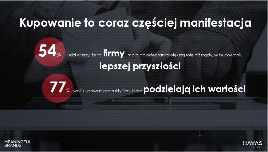 W Polsce 54% konsumentów (globalnie 55%) uważa, że to marki i firmy, a nie rządy czy politycy, mają do odegrania ważniejszą rolę w zmienianiu naszego świata na lepsze. Dziś nasze wybory konsumpcyjne coraz częściej stają się także kwestią manifestacji światopoglądu.