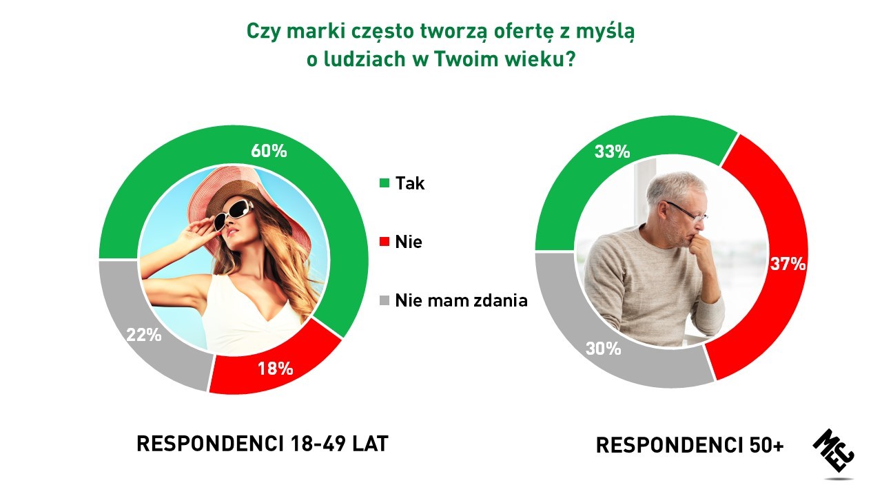 Problem z segmentem 50+ sięga jednak poza sferę komunikacji marketingowej. Tylko co trzeci „50+latek” uważa, że marki często tworzą ofertę z myślą o ludziach w jego wieku. Widać więc przepaść pomiędzy osobami po 50-tce a przedstawicielami tzw. grupy komercyjnej (16-49 lat), wśród których 60 proc. jest przekonana, że marki myślą o ich potrzebach.