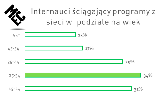 Ściąganie programów z sieci jest domeną mężczyzn (32 proc. versus 23 proc. kobiet) i 25-34-latków – więcej niż 1/3 z nich pobiera filmy i seriale z torrentów. Popularności takiego sposobu dostępu do wideo nie różnicuje natomiast miejsce zamieszkania czy sposób odbioru telewizji – wśród klientów płatnej telewizji i widzów naziemnej programy z sieci ściąga ten sam odsetek internautów.