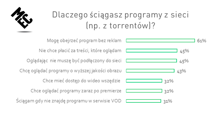 Główną motywacją e-widzów korzystających z torrentów jest zdobycie programu bez reklam.