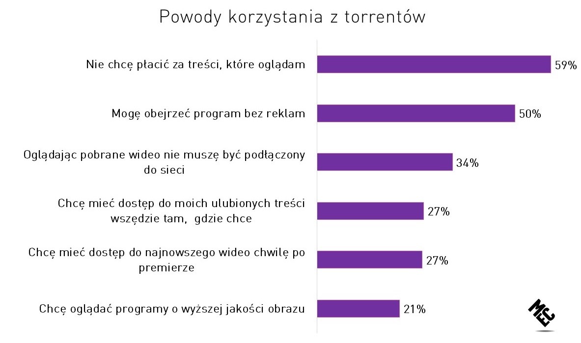 Torrenty i serwisy hostingowe tracą na popularności wśród internautów korzystających z wideo w sieci – pokazuje MEC VideoTrack II, badanie agencji mediowej MEC. Z 27 proc. w 2015 do 24 proc. w tym roku spadł odsetek użytkowników ściągających filmy i seriale z internetu. Zestawienie tych danych z lekkim wzrostem popularności wideo oraz statystykami popularności pirackich stron VOD pokazuje, że Polska dołączyła do rynków, w których piractwo wideo przenosi się z torrentów do serwisów streamingowych.