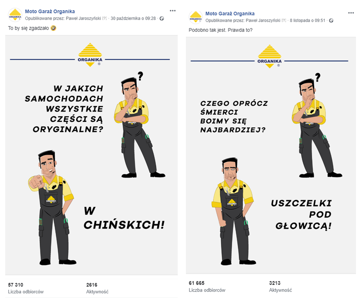 Na Facebooku jest około 11 milionów Polaków, którzy deklarują, że interesują się motoryzacją. Wśród nich blisko 3,5 miliona mieszka w miastach, w których można kupić produkty Organiki. W ciągu trzech miesięcy działań opublikowaliśmy ponad 20 postów z Zenkiem w roli głównej. W tym czasie nasz fanpage dotarł do ponad 618 000 odbiorców.