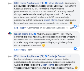 To nie pierwszy przykład takiej reakcji BSH na apele internautów. Firma już wcześniej pokazała, jak można dobrze wykorzystywać media społecznościowe do działań CSR. BSH odpowiedziała m.in. na apel o pomoc Fundacji Koci Azyl, przekazując jej potrzebny sprzęt i zapewniając wsparcie pracowników, wolontariuszy. Producent AGD wsparł również Fundację Rodzin Adopcyjnych, błyskawicznie reagując na wpis Filipa Chajzera.