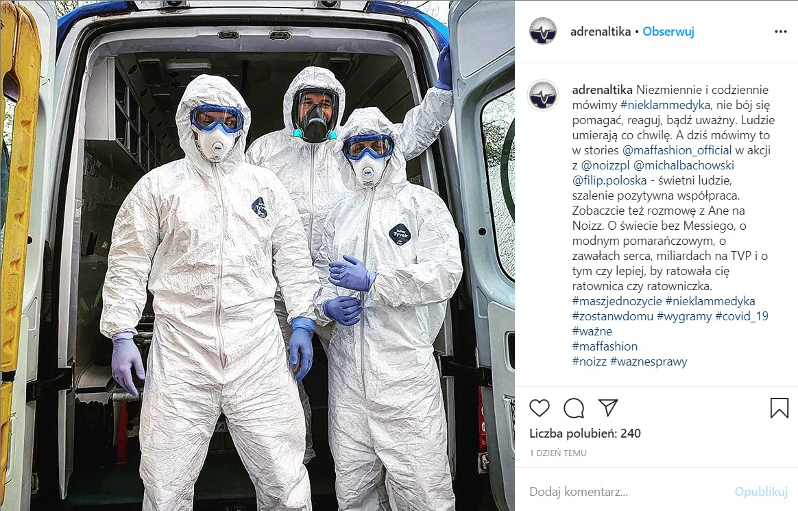 W ramach akcji #RealInfluencers na portalu Noizz.pl się też materiały poświęcone pracy osób, które walczą z koronawirusem – m.in. wywiad ze wspomnianą ratowniczką medyczną Ane Piżl.