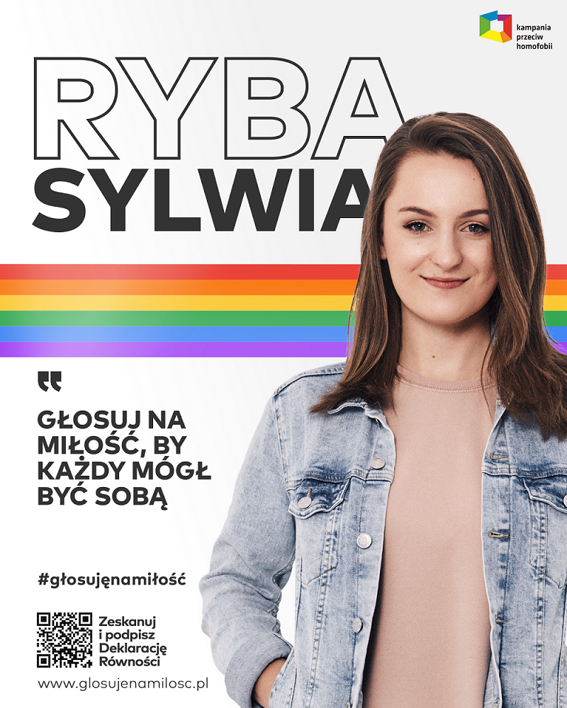 „Miłość czy nienawiść? Dla mnie wybór jest prosty! Dlatego w tych wyborach głosuję na polityczki i polityków, którzy wspierają prawa osób LGBT” czytamy na stronie www.glosujenamilosc.pl stanowiącej serce kampanii Głosuję na miłość. To tekst Deklaracji Równości, pod którą powinien podpisać się każdy, kto w tych wyborach chce oddać świadomy głos. Z plakatów i billboardów rozklejonych w całej Polsce oraz w spotach wyborczych emitowanych w mediach społecznościowych do podpisania Deklaracji zachęcać będą: tancerz Michał Piróg, aktywistka Areta Szpura, influencer Piotr Grabarczyk, paraolimpijka Karolina Hamer, dziennikarz Anton Ambroziak, pisarz Marcin Szczygielski oraz blogerka Sylwia Ryba – osoby LGBT, które wraz z sojusznikami i sojuszniczkami chcą, aby w tych wyborach wygrała miłość. To na początek. A co jeszcze możesz zrobić?