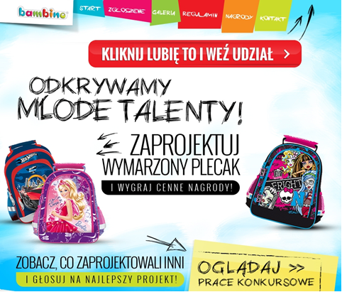 Konkurs Bambino zorganizowany został przez firmę ST Majewski, największego producenta wyrobów piśmienniczych w Polsce, w tym kultowych kredek Bambino wraz partnerami, firmą Mattel, Egmont Polska oraz Pearson. Doradztwem, zorganizowaniem konkursu online, czyli wykonaniem grafik, wdrożeniem aplikacji konkursowej na stronie docelowej i na Facebooku www.facebook.com/KonkursBambino oraz koordynacją działań i bieżącą obsługą zajęła się agencja interaktywna Migomedia.pl. Poza stroną www.konkursbambino.pl/, główną osią konkursu był profil na Facebooku o nazwie Konkurs Bambino. Zadaniem dla uczestników było zaprojektowanie wzoru wymarzonego plecaka na wskazanym w aplikacji konkursowej szablonie.