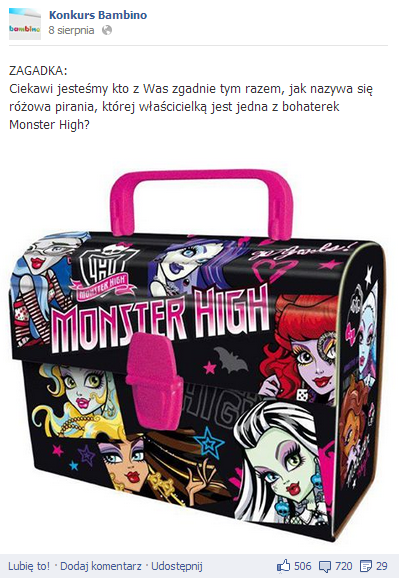 UWAGA: Często posty umieszczane w profilu konkursu na Facebooku miały więcej komentarzy niż samych like’ów, np. 720 komentarzy i 506 like’ów.