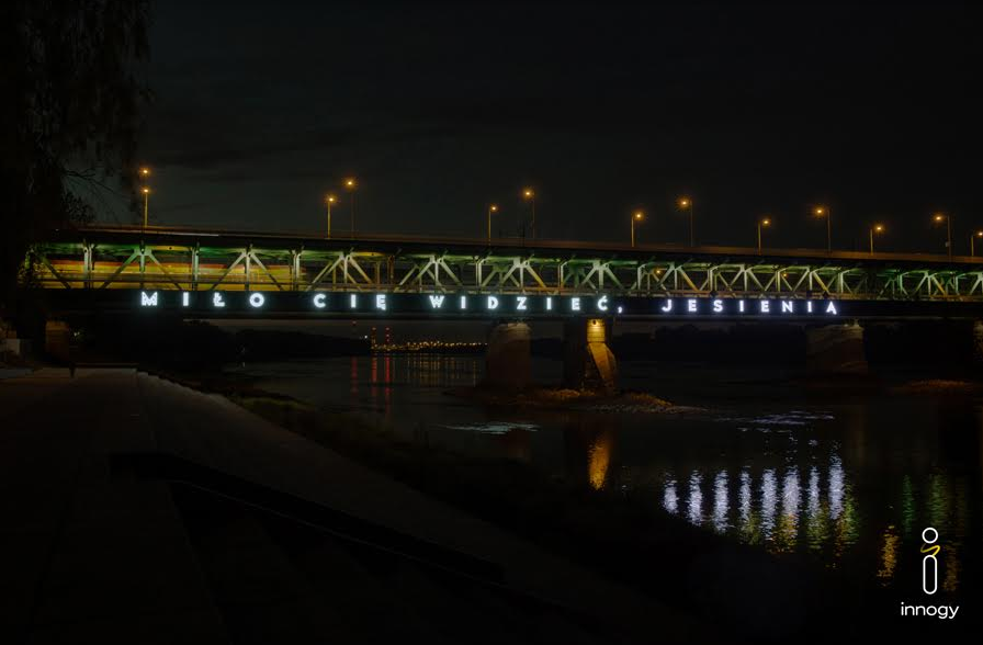 Lokalna aktywacja wykorzystująca neon „Miło Cię widzieć” to element kampanii rebrandingowej innogy (dawne RWE), która od września obejmuje cykl działań skupionych wokół tego przesłania. Do 2 października, wpisując imię na stronie www.milociewidziec.innogy.pl , warszawiacy mogą sami zdecydować, komu powiedzieć „Miło Cię widzieć”. Wpisane hasło zostanie wyświetlone na moście Gdańskim, a użytkownicy otrzymają pamiątkowe zdjęcie.