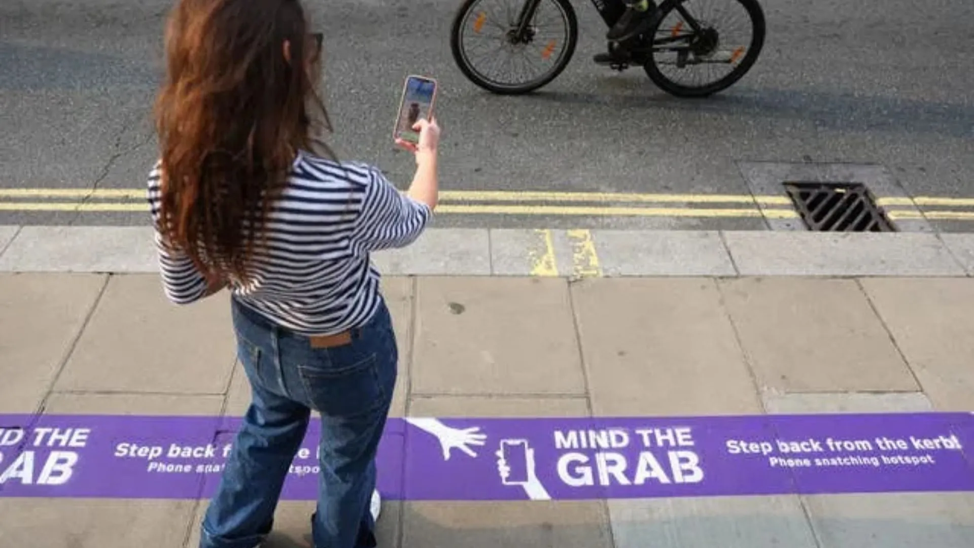 Napisy na fioletowych liniach umieszczono na ziemi, a inspiracją do ich hasła, które się na nich znalazło jest oczywiście komunikat dobrze znany z londyńskiego metra – brzmi on „Mind the Gap”. Pieszym, którzy mijają linie ma to przypominać o konieczności odsunięcia się od krawężnika oraz schowania swojego telefonu w trudno dostępne miejsce, by zminimalizować ryzyko kradzieży.