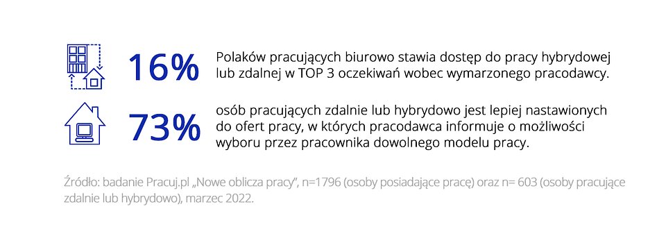Jeszcze do niedawna wiele osób używało terminu „nowa rzeczywistość”, wspominając o dostosowaniu narzędzi biznesowych do nowych wyzwań, które pojawiły się w związku z pandemią COVID-19. Od pierwszej połowy 2020 roku biznes wykorzystuje technologię, by jak najszybciej dostosować się do dynamicznych zmian. Po ponad dwóch latach od wybuchu pandemii na rynku pracy elastyczne formy wykonywania obowiązków są stałym elementem rynkowej gry, oczekiwanym przez pracowników i często stanowiącym niezbędną cechę wymarzonego pracodawcy. Dzięki cyfryzacji metod wykonywania zadań przez pracownika wzrosła konkurencja o kandydatów także w mniejszych ośrodkach, a Polacy mają większy wybór ofert pracy, bo nie zawsze muszą mieszkać w miejscu, w którym zlokalizowany jest pracodawca. Dziś wymarzony pracodawca niekoniecznie musi znajdować się fizycznie tam, gdzie mieszkamy – komentuje Aleksandra Skwarska, PR & CSR manager Grupy Pracuj.