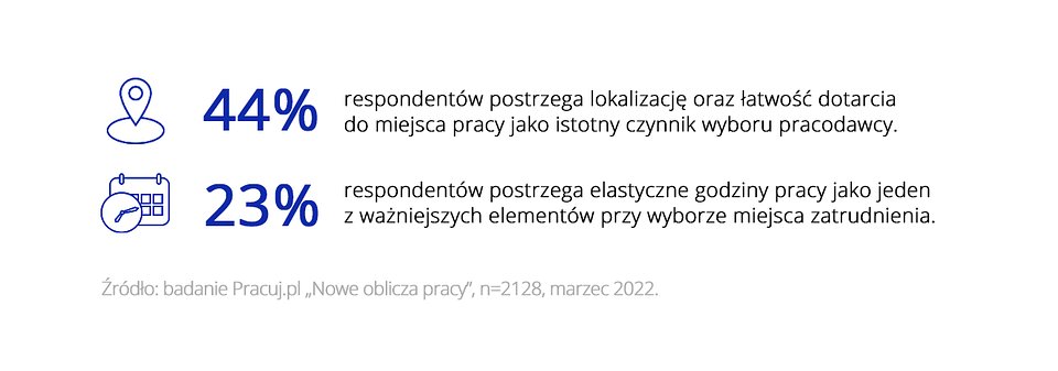 Należy zaznaczyć, że tę kwestię powinno się rozpatrywać biorąc pod uwagę rodzaj biznesu oraz wymagane obowiązki, wynikające ze stanowiska pracy. O tym, czy miejsce zamieszkania będzie miało większe bądź mniejsze znaczenie dla pracodawcy, decydują obowiązki i kompetencje pracownika oraz branża. Niemniej, 44% kandydatów w procesie przeglądania ofert zwraca uwagę na lokalizację biura swojego potencjalnego pracodawcy, szacując czas dojazdu do pracy i powrotu do miejsca zamieszkania.