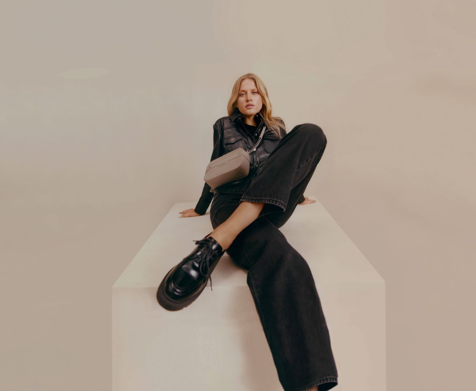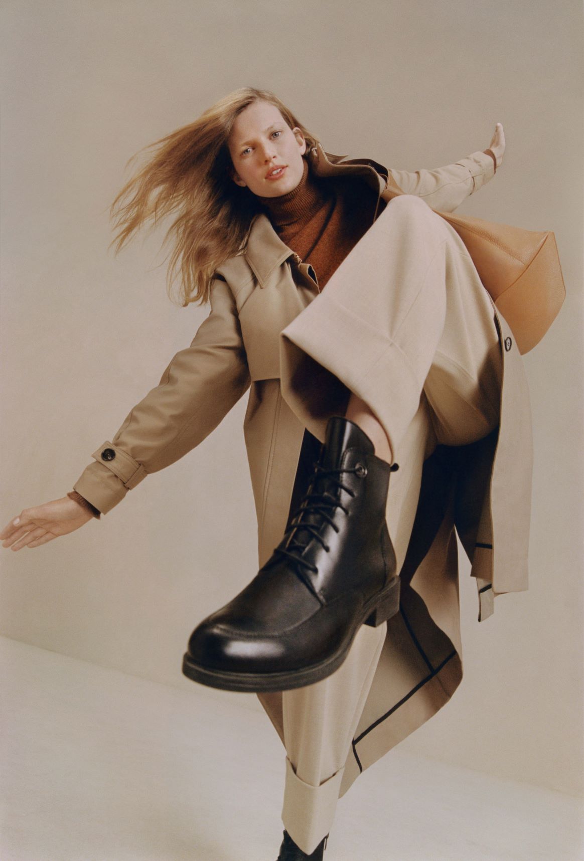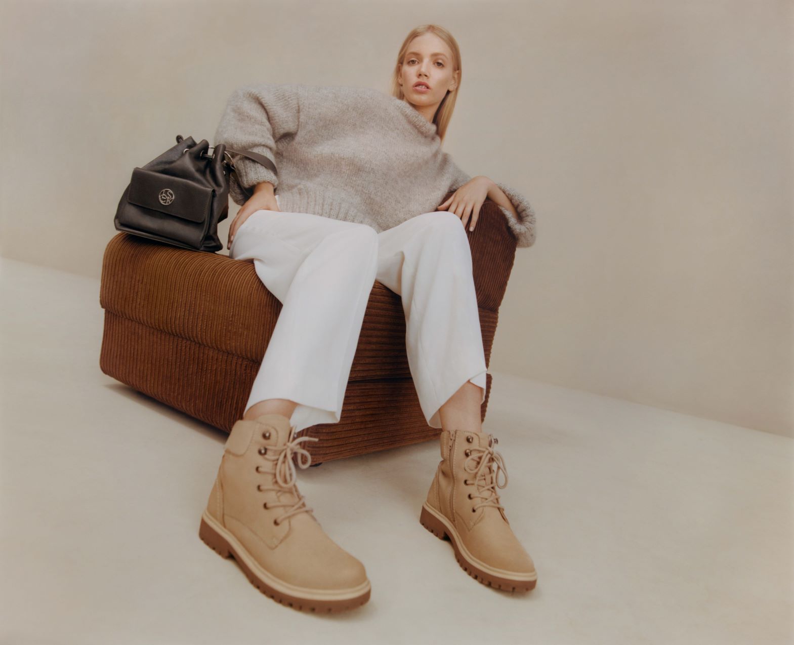 Mokasyny, sznurowane botki do kostek i sztyblety zostały pożyczone z męskiej szafy, pozbawione westernowych akcentów kowbojki nabrały szlachetności, a muszkieterki za kolano dzięki masywnej podeszwie wyglądają jak z „Matrixa”. Wśród odcieni – zarówno w kolekcji butów, jak i torebek – prym wiedzie beż – od koloru naturalnej skóry po karmel. Własną kolekcję torebek można skompletować z pojemnych shopperek, prostokątnych kuferków na szerokim pasku oraz półksiężyców w stylu retro.