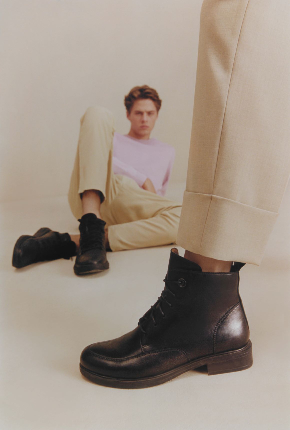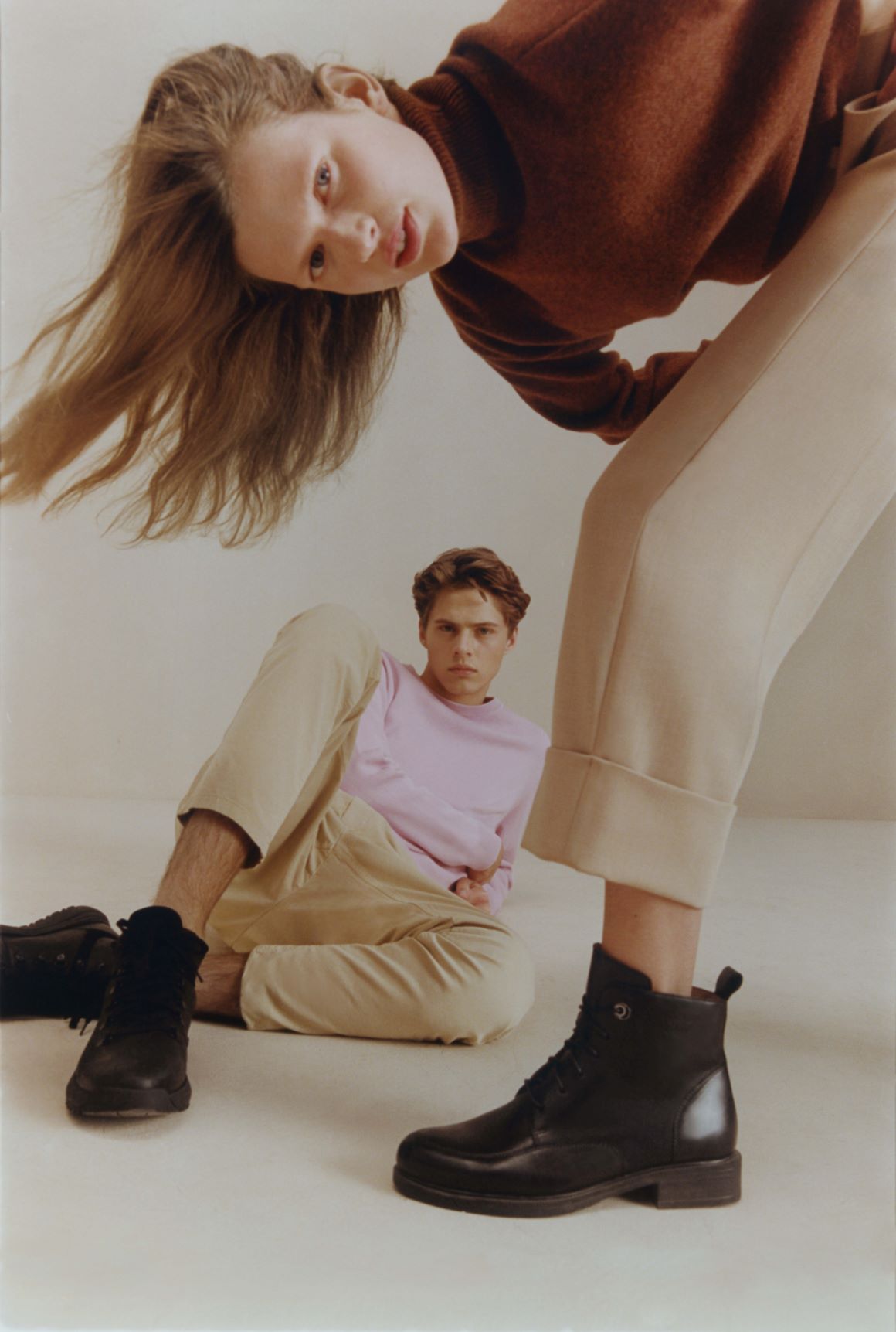 Mężczyźni ceniący wygodną elegancję zwrócą uwagę na sneakersy, sztyblety i trapery w neutralnej palecie kolorystycznej zbliżonej do linii damskiej.