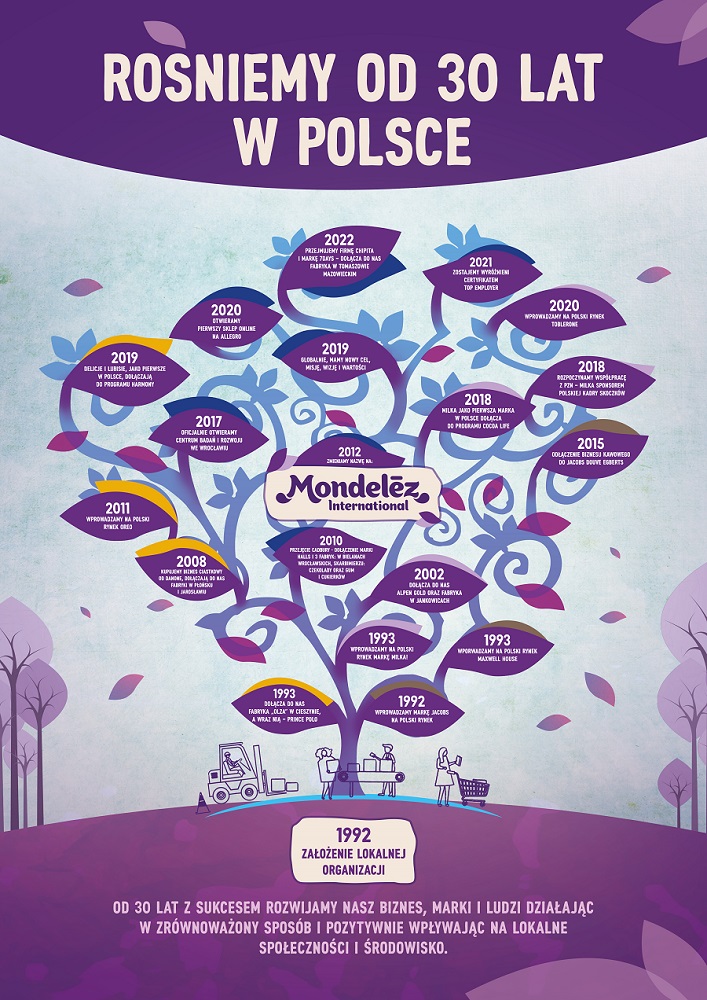 Mondelez Polska świętuje swój jubileusz pod hasłem „Rośniemy od 30 lat w Polsce”, które oddaje charakter działalności firmy. Rocznica ta jest doskonałym momentem na podsumowanie tego, co udało się osiągnąć firmie w Polsce.
