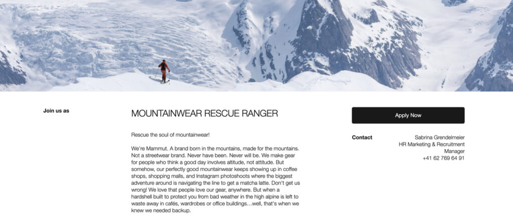 Jedną z akcji powstałej w ramach kampanii jest dostępna na stronie rekrutacja na stanowisko ratownika odzieży górskiej.