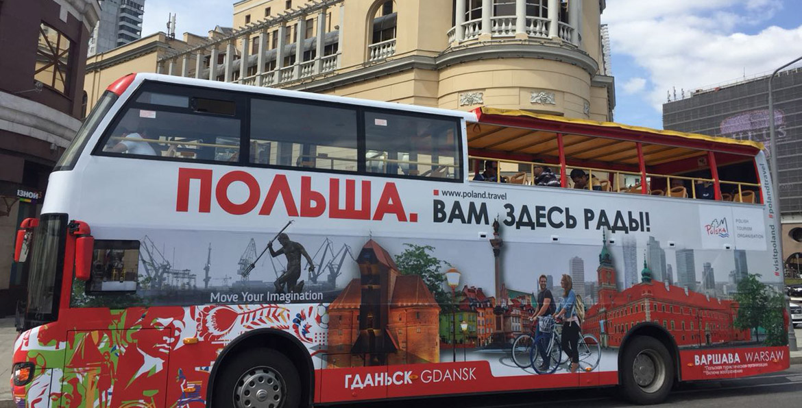 Dwa pierwsze mecze fazy grupowej Mistrzostw Świata polska reprezentacja rozegra na stadionach Spartak Arena w Moskwie i Kazań Arena w Kazaniu. Po ulicach tych miast jeździ autobus w barwach polskiej turystyki w wersji mundialowej z hasłem Польша. Вам здесь рады!. Ekspresyjna reklama rzuca się przechodniom w oczy, wśród nich licznym grupom zagranicznych kibiców. Szacuje się, że podczas Mistrzostw Świata w Piłce Nożnej Rosja 2018, nad Wołgą pojawi się ponad milion fanów narodowych drużyn rywalizujących na trawiastych arenach Rosji o Puchar Świata FIFA.