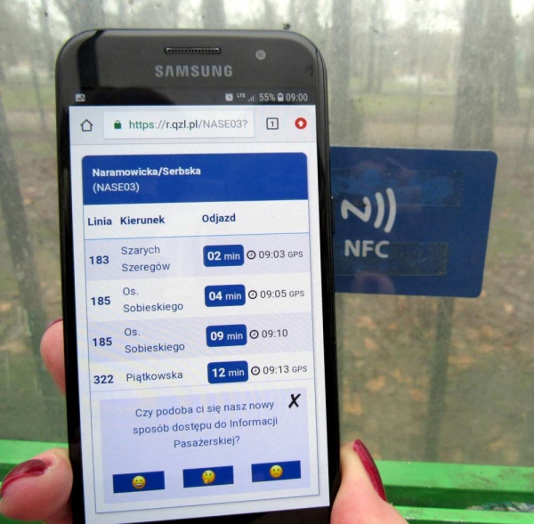 W Poznaniu rusza pilotażowy program, który miałby informować mieszkańców miasta o dokładnym czasie przyjazdu autobusu lub tramwaju. Na stu przystankach pojawią się naklejki z tagami NFC, do których należy przyłożyć smartfon z dostępem do internetu, by pojawiła się informacja za ile minut przyjedzie pojazd komunikacji miejskiej.