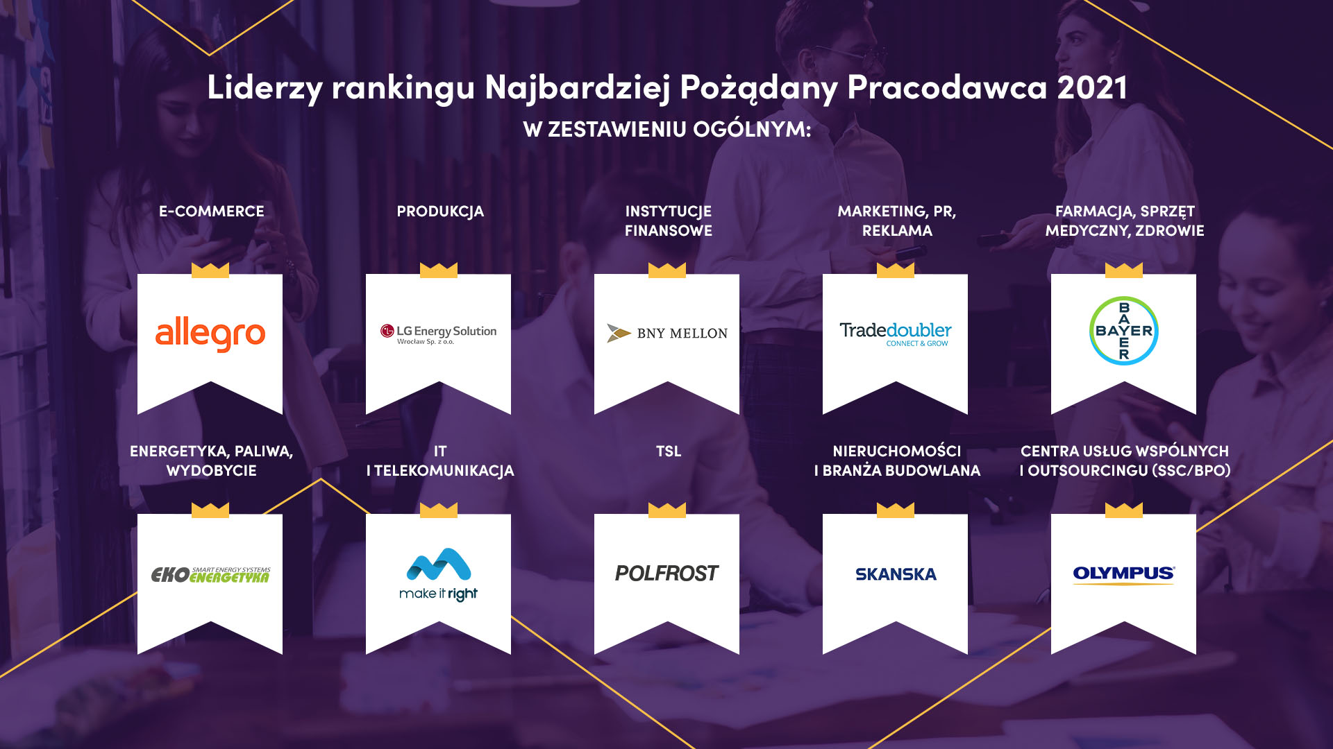 Tytuł Najbardziej Pożądanego Pracodawcy dodatkowo został przyznany w 10 kategoriach branżowych: finansach, IT, energetyce, farmaceutyce, FMCG, nieruchomościach, produkcji, marketingu, PR i reklamie oraz e-commerce.