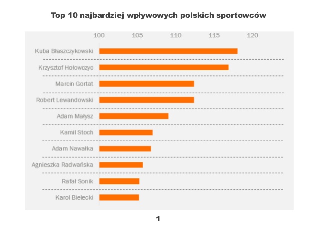 Ranking Top 10 najbardziej wpływowych polskich sportowców prezentuje się następująco: