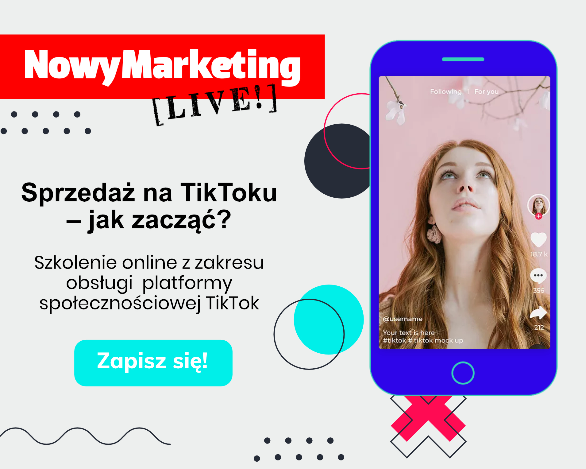 „Sprzedaż na TikToku – jak zacząć?” to drugie szkolenie z cyklu NowyMarketing [Live!], do którego zaprosiliśmy najlepszych ekspertów oraz twórców działających w tej aplikacji. Dzięki zaangażowaniu osób zajmujących się tym tematem z różnych perspektyw, jesteśmy w stanie przekazać szeroką wiedzę zarówno teoretyczną, jak i praktyczną.