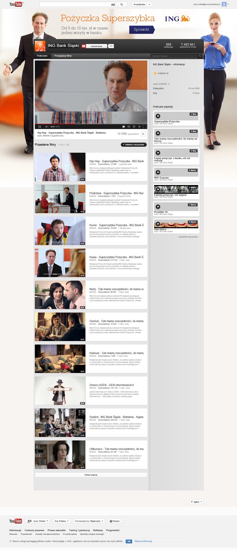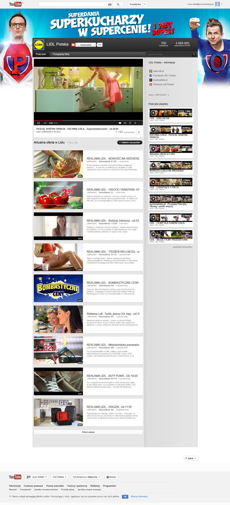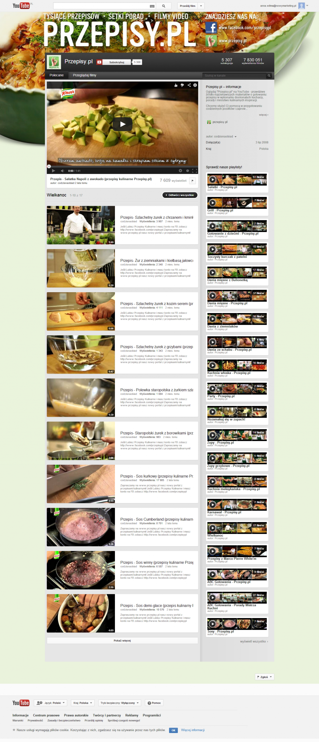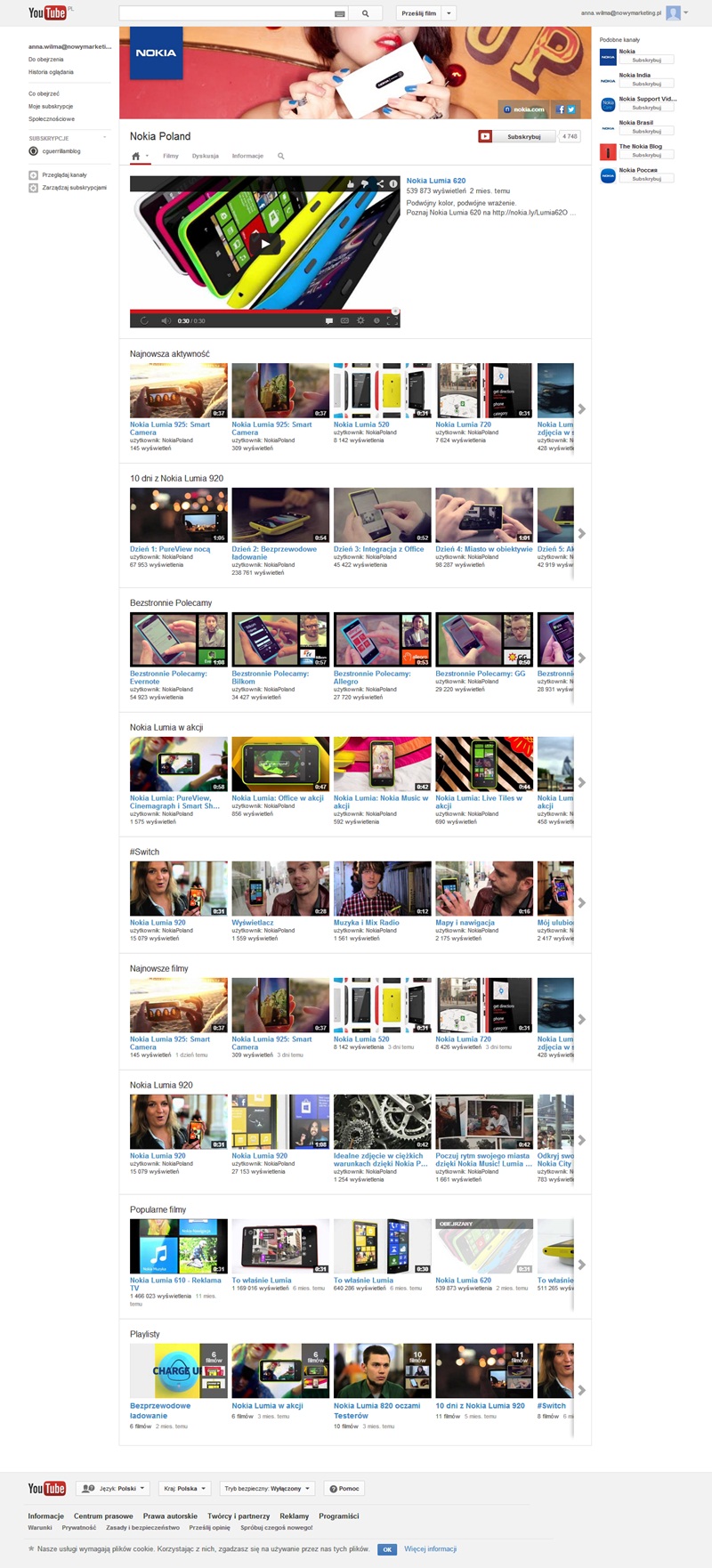 Filmy opublikowane na kanale Electronic Arts Polska obejrzało ponad 25 mln razy, Serce i Rozum ponad 20 mln razy, a Samsung Polska prawie 14 mln razy. W czołówce znalazły się także kanały: Leroy Merlin Polska (8,7 mln obejrzeń), PlayTV (8,6), Nokia Poland (8,5), Co dziś na obiad (7,8), ING Bank Śląski (7,5), TMobileTrendyPL (7,2), NIVEA Polska (5,5), ŠKODA Polska (5,3), MojeCiasto (5,2), LIDL Polska ( 4,5), Old Spice Polska (4,5), PLUS (4,4), E. Wedel (4,5), Szkoła Gotowania WINIARY (4,2), Dove Polska (4), RTV Euro AGD (3,7) i Bank Millennium (3,5).