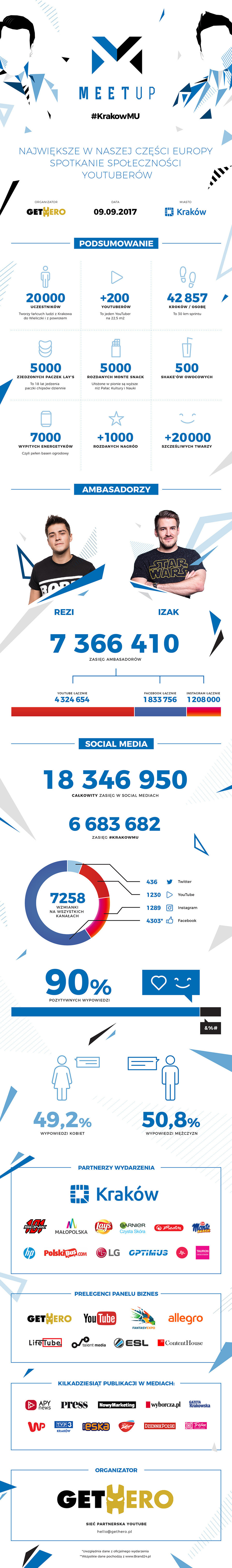 MeetUp 2017, zorganizowany w Krakowie na początku września, pozwolił ponad 200 twórcom spotkać się z niemal 20 tysiącami fanów, którzy mogli spędzić cały dzień z idolami, zrobić sobie z nimi zdjęcia i zebrać autografy. Spotkanie zorganizowała agencja kreatywna GetHero, a wybór miejsca imprezy okazał się strzałem w dziesiątkę – przestrzeń Tauron Arena Kraków zapełniła się w kilka minut po otwarciu bramek. W tym roku wstęp na imprezę był bezpłatny, choć dla najbardziej oddanych fanów przygotowano bilety Premium. Komunikacja w mediach społecznościowych oparta była na publikowaniu wpisów i filmów przez organizatora, ambasadorów, twórców oraz samych uczestników imprezy, docierając łącznie do 18 milionów użytkowników.