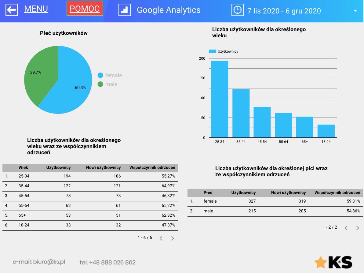 Przykładowy raport przedstawiający dane demograficzne użytkowników.