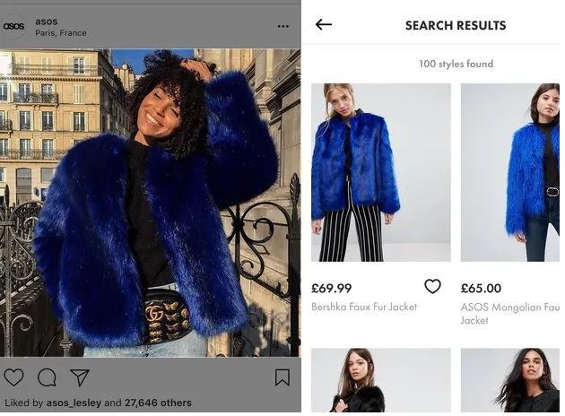 Brytyjska firma już w 2017 roku wprowadziła w swoim sklepie online możliwość wyszukiwania produktów za pomocą zdjęcia. Użytkownik, który poszukuje produktu z konkretnego zdjęcia, może skorzystać z funkcji Style Match. Po wgraniu zdjęcia aplikacja przedstawia produkty dostępne w asortymencie ASOS najbardziej zbliżone wizualnie do szukanego produktu.
