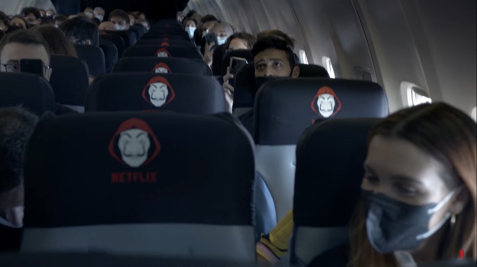 Fani serialu – którzy przez umieszczanie w sieci spoilerów zniszczyli już niejeden seans – zostali zaproszeni przez Netflixa do wzięcia udziału w specjalnym pokazie premierowych odcinków piątego sezonu „Domu z papieru”. Uczestnicy wydarzenia byli przekonani, że zostaną przetransportowani do Madrytu, gdzie odbędzie się ekskluzywny pokaz najnowszych odcinków. Na pokładzie samolotu pasażerowie, niczym zakładnicy, otrzymali komunikat o tym, że wcale nie dostaną się do Madrytu, tylko pozostaną w samolocie.