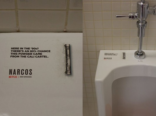 Z kolei z okazji premiery trzeciego sezonu serialu marka stworzyła kilka dobrych akcji kontekstową kampanię OOH, w której agencja DonerLA umieszcza reklamy w łazienkach klubów i barów, gdzie klienci w latach 90. konsumowali towar kartelu Cali.