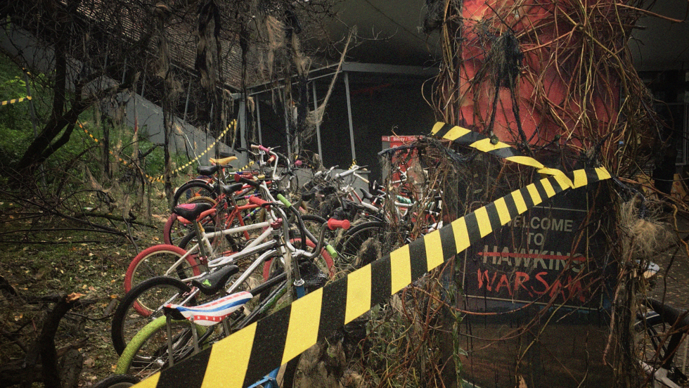 Netflix z okazji premiery nowego sezonu Stranger Things zorganizował akcje w jednej ze stacji na warszawskim Powiślu. Stojaki na rowery pokrywała lepka maź, a zamiast dobrze znanych wszystkim miejskich rowerów stoją modele jednośladów z lat osiemdziesiątych – m.in. BMX i Wigry 3. Wszystko było zaplątane w gęstą pajęczynę i oplecione konarami drzew.