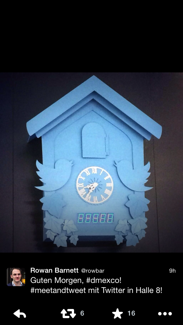 Nietypowy zegar z kukułką nawiązywał wyglądem do szaty graficznej popularnego portalu społecznościowego. Sposób działania również zaskakiwał – kukułka regowała nie na pełne godziny, ale na tweety uczestników targów. Wszystko dzięki platformie Raspberry Pi, która “nasłuchiwała” nadchodzących tweetów i sterowała mechanizmem. Aby wywołać kukułkę wystarczyło umieścić na Twitterze post z hasztagiem #meetandtweet. Wszystkie otagowane w ten sposób tweety sumował licznik umieszczony z przodu zegara. Co więcej, na ekranie połączonym z instalacją wyświetlała się ich treść.