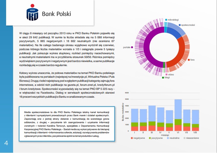 Raport, wzbogacony o wypowiedzi rzeczników prasowych oraz specjalistów branży PR, jest ciekawym kompendium wiedzy na temat aktualnej sytuacji banków w Internecie, ukazującym pojawiające się tendencje i główne obszary zainteresowania internautów. Profesjonalne wizualizacje ukazują ogrom zebranych danych w sposób przystępny zarówno dla laika, jak i specjalisty od komunikacji.