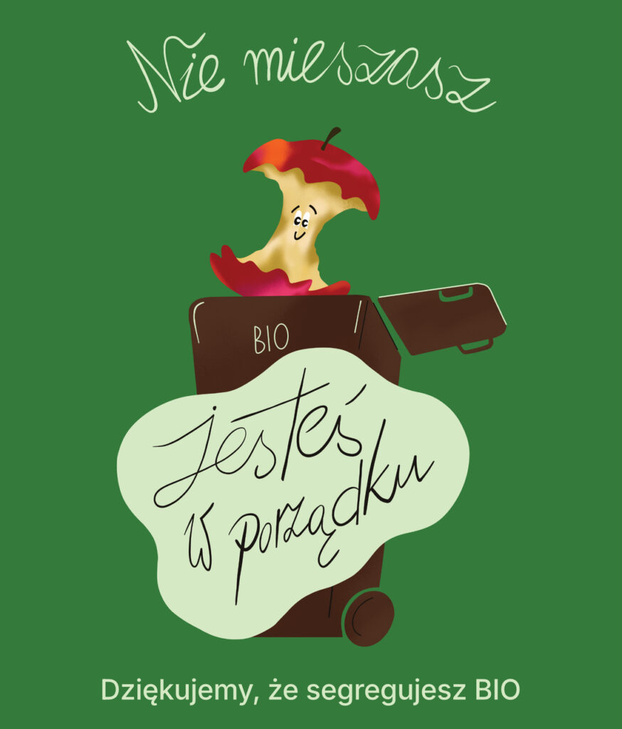 40% Polek i Polaków nie wie, co dzieje się z posegregowanymi bioodpadami. Trudno zatem dziwić się niechęci do działania. To wprost prowadzi do obierania drogi na skróty, czyli wyrzucania resztek kuchennych do pojemnika na odpady zmieszane. Ten powszechny problem stał się punktem wyjścia dla hasła kampanii „Nie mieszasz, jesteś w porządku”. Celem było podkreślenie, że dzięki segregacji jest się w porządku nie tylko w sensie dosłownym, ale też metaforycznie: z samym sobą, zasadami i środowiskiem.