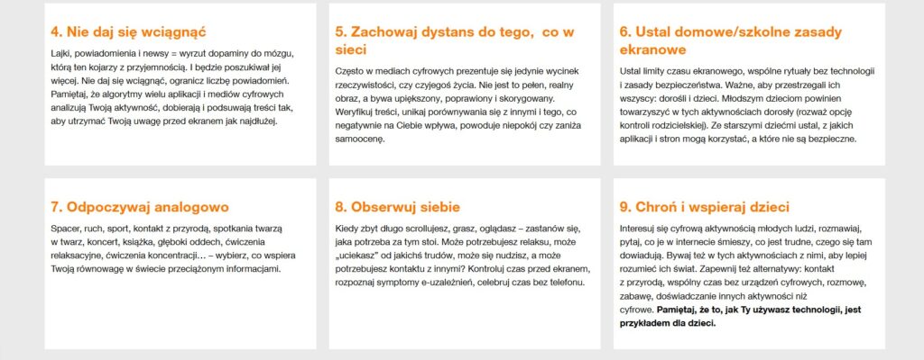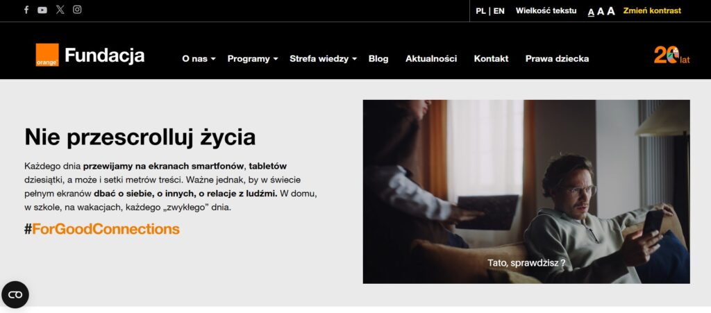 Kampania „Nie przescrolluj życia” nie jest jedynie akcją okresową. W jej ramach Fundacja Orange rozwija także inicjatywy edukacyjne skierowane do rodzin, szkół i nauczycieli, promując zasady higieny cyfrowej oraz umiejętne korzystanie z technologii. Takie działania podkreślają rolę dorosłych jako wzorców dla młodszych pokoleń.