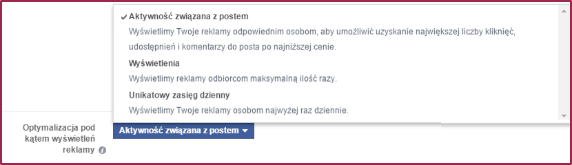 Facebook umożliwia oczywiście prowadzenie kampanii reklamowych promujących posty. Kto jednak miałby czas, by do każdego wpisu ustawiać osobną kampanię? Już samo prowadzenie komunikacji na Facebooku (publikacja postów, reakcja na wiadomości użytkowników, odpowiadanie na pytania i komentarze itp.) bywa czasochłonne. Warto również zwrócić uwagę na znaczne ograniczenia Facebooka w ustawieniach takich kampanii. Możliwa jest bowiem np. jedynie optymalizacja pod kątem zaangażowania, liczby wyświetleń posta i unikalnego zasięgu.
