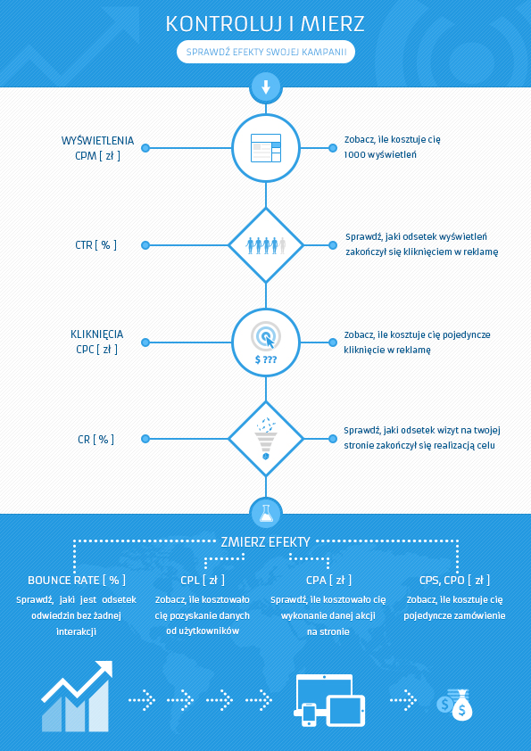 Narzędzia jakie dostarcza internet pozwalają na zbieranie danych w czasie rzeczywistym. To oznacza, że każdą kampanię można na bieżąco monitorować i optymalizować, a tym samym zwiększać jej skuteczność. Aby zrobić to jak najlepiej trzeba rozszyfrować takie skróty jak CPM, CPC, CPA, CTR, CR… a to dopiero początek. Na co postawić i według jakich kryteriów mierzyć jej efekty?