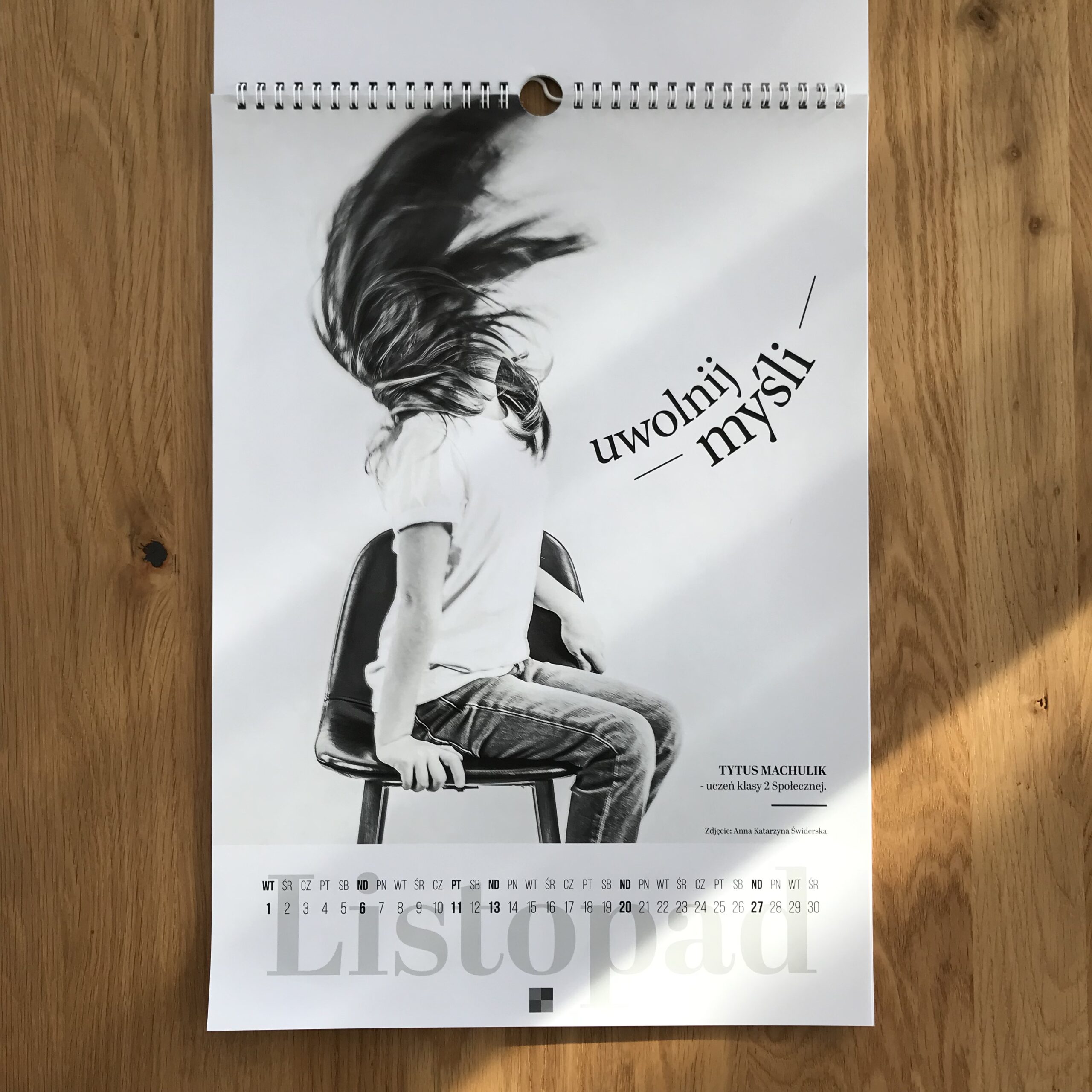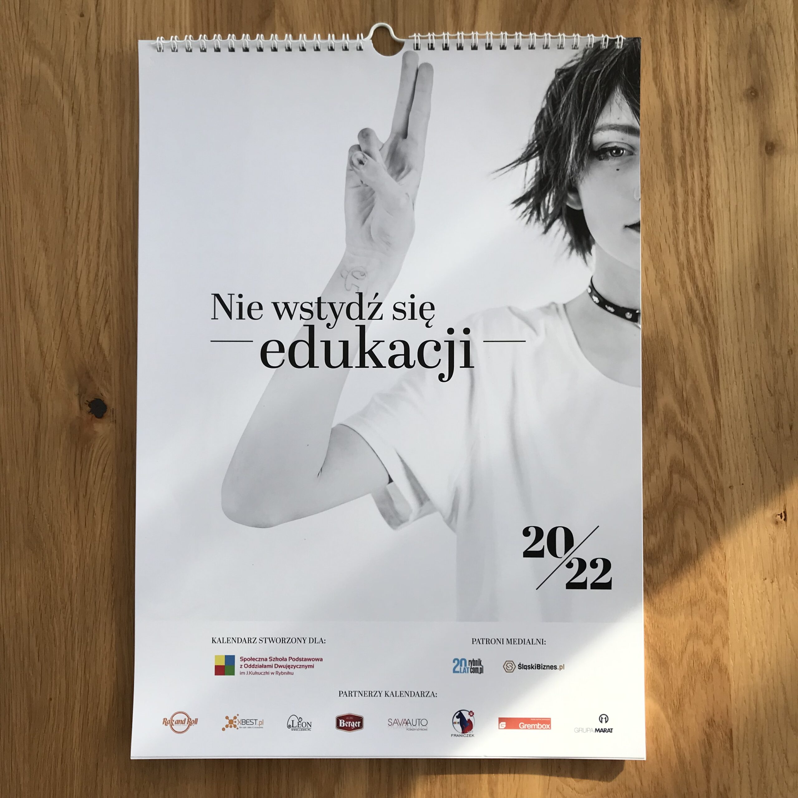„Nie wstydź się edukacji” to motyw przewodni pierwszej edycji kalendarza, który powstał z myślą o uczniach i dla uczniów, ponieważ całkowity dochód z jego sprzedaży zostanie przeznaczony na budowę pierwszej własnej siedziby Szkoły Społecznej w Rybniku. Kalendarz składa się z trzynastu czarno-białych portretów wraz z hasłami definiującymi ideę oraz dodatkowej karty na „Twój pomysł na edukację”.